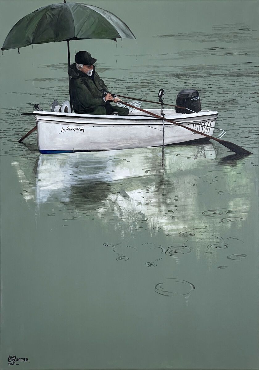 RAINY DAY At this early hour, there seemed to be only one being on the lake, this tranquil fisherman in his white boat, like a low and sweet note of the chord composed at the beginning of a rainy day, with its sky, and its circles in the water ...