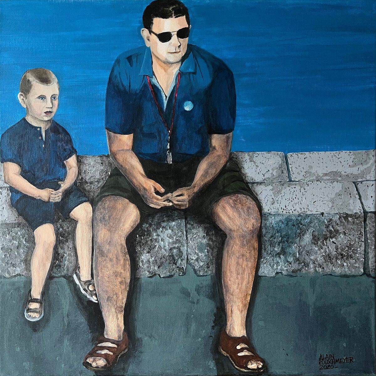 FATHER AND SON It's August, the weather is fine, the sea is calm, an ideal day for a getaway and a moment of complicity. Sitting side by side on the parapet, father and son wait for the shuttle boat to travel to the island and walk around together watching the birds.