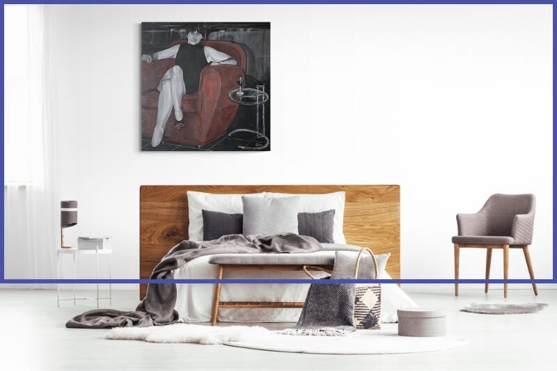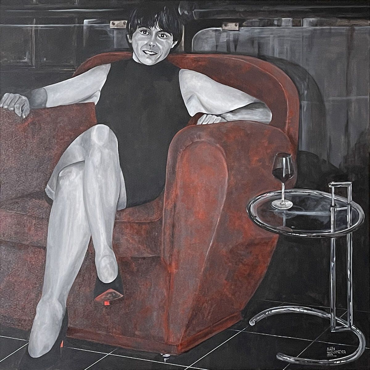 SMOKING & LEOPARD Slipping away in the middle of a fitting session, she lets me discover her shoes abandoned at the feet of the Smoking and leopard armchair, the rag overflowing from the open drawer and stained with black shoe polish, as well as the novel she has been telling me about for several days but that I hadn't seen it yet. And suddenly I wonder: is this painting that is presented to my gaze the result of chance, or is it trying to tell me something?